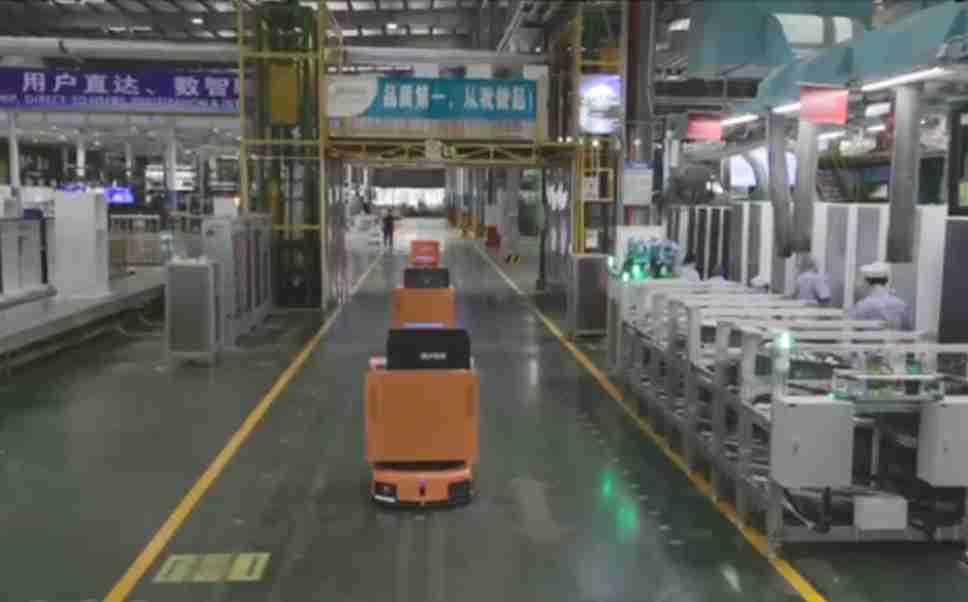 为车载冰箱物流配送打造的智能解决方案,,包含产中物流通过潜伏举升AMR搬运至线边,,产后成品物流智能仓储,,,流程包含产中物流智能齐套入库,,,,线边安灯叫料AMR智能配送至线边,,,成品入库、、、、出库,,通过无人堆高车机器人,,,智能仓储管理替代人工作业管理,,,,实现更高存储、、、更高效率、、、、更具柔性化的解决方案。。。。